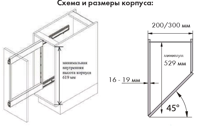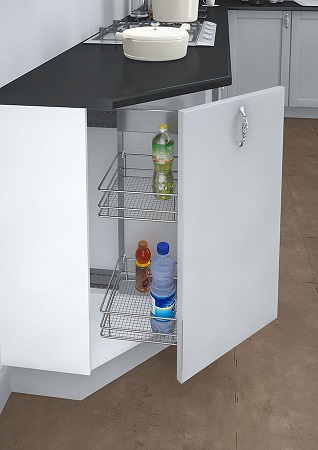 Бутылочница выдвижная для скошенных тумб 45 градусов Vauth-Sagel Sapfir-2 применяется как механизм для нижних шкафов для хранения различных по высоте емкостей