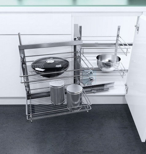Система выдвижения Волшебный уголок Vauth-Sagel Classic предназначена для установки в угловые тумбы шириной 800 мм с выдвижным фасадом шириной 400-450 мм