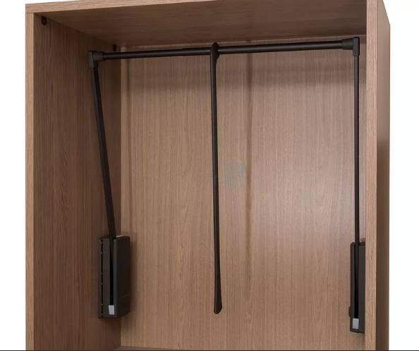 Легко опускает всю одежду на уровень глаз, что делает процесс использования простым и удобным. Позволяет увеличить вместимость шкафа на 20%. Может устанавливаться двумя способами: крепление в центральной части боковин шкафа или ближе к задней стенке. В случае ограниченного пространства перед шкафом пантограф нужно устанавливать ближе к задней стенке и при опускании он будет выходить из шкафа всего на 365 мм. Для секций от 500 мм штангу пантографа при монтаже можно упилить до необходимого размера. Надежный гидравлический механизм обеспечивает плавный бесшумный ход без люфта и легкое управление. Крепления пантографа и ручка выполнены из стекловолокнистого нейлона, изготовленного по специальной технологии, что гарантирует им долгий срок службы. Может устанавливаться в шкафы с распашными фасадами.