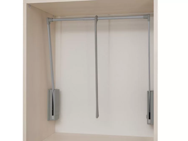 Главная Каталог Наполнение для шкафов и гардеробных комнат Пантограф SERVETTO для одежды, в корпус 600-1000 мм, корпус-серый, штанга-серый