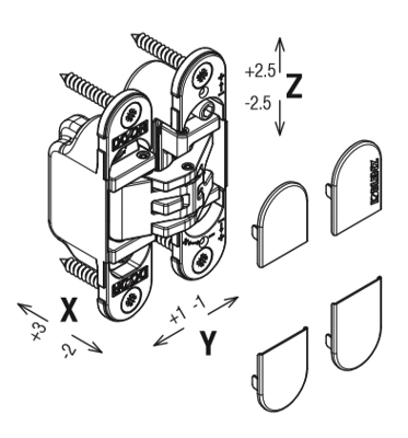 - регулируются в 3-х плоскостях, все регулировки независимые (горизонтальная +3,0/-2,0 мм, вертикальная +/-2,5 мм, в глубину +/- 1,0 мм)