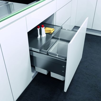 Комплектация: 2 ведра 22 л, выдвижной каркас на направляющих полного выдвижения с доводчиком, подвижная крышка на всю ширину системы, крепежная фурнитура.