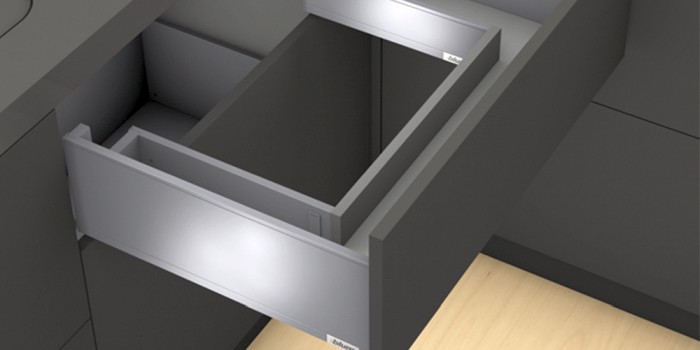Система выдвижения с тонкими ( 12,8 мм ) боковинами, прямых изнутри и снаружи. С центральной планкой. Предназначена для ширины корпуса до 1400 мм. В комплект входят 2 двустенные царги pure высотой C (левая и правая) длиной 500 мм, 2 двустенные царги pure высотой M (левая и правая) длиной 350 мм, 4 симметричные внешние декоративные заглушки, 4 симметричные внутренние декоративные заглушки, 2 направляющие на 40 кг с BLUMOTION (левая и правая) длиной 500 мм, 2 симметричных крепления фасада EXPANDO высотой C, 2 симметричных крепления фасада EXPANDO высотой M, 2 задние стенки "C" L-образные (левая и правая) из стали,
