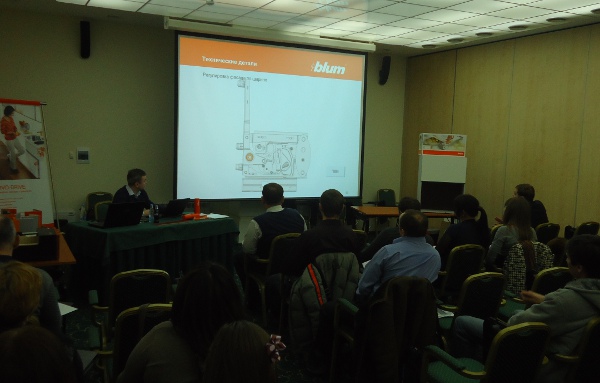 На семинаре были представлены новинки фурнитуры Blum. Посетители проявили большой интерес к шаблон-шоу, которое было впервые показано в рамках семинара. По окончанию семинара все желающие могли получить каталог Blum 2011.